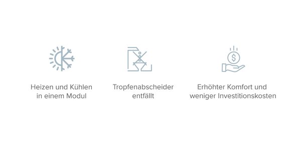 Dank der hydrophilen Beschichtung der Aluminiumlamellen wird entstehendes Kondensat effizient abgeführt. Dadurch entfällt die Installation eines Tropfenabscheiders. Das spart Bauraum, reduziert den Druckverlust und senkt die Investitions- und Betriebskosten.